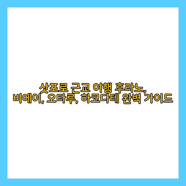 - 교통 정보: 홋카이도 레일패스 외에도 지역 버스나 렌터카를 이용할 수 있습니다. 특히 비에이나 후라노처럼 대중교통이 불편한 지역은 렌터카를 이용하는 것이 효율적입니다. (겨울철에는 폭설에 대비하여 스노우 타이어를 장착하는 것을 잊지 마세요!)